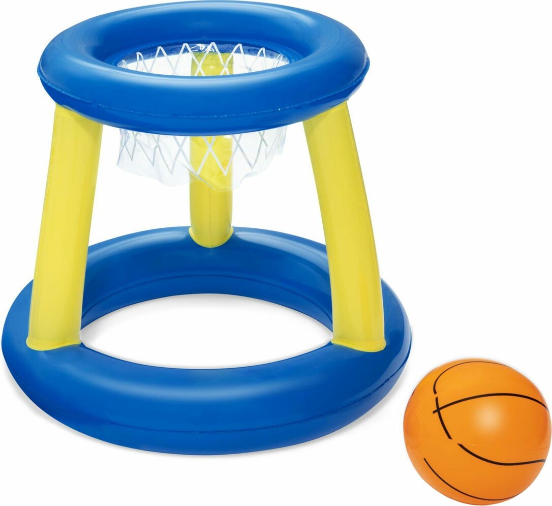 Ø 61 cm, Farbe: gelb/blau, inklusive 3 aufblasbaren Ringen und einem aufblasbaren Basketball, schwimmende Konstruktion, Alter ab 3 Jahren