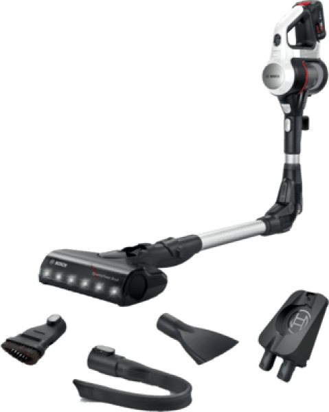 Bosch BBS711W. Produkttyp: 2-in-1-Stabstaubsauger, Staubbehälter Typ: Beutellos, Produktfarbe: Weiß. Reinigungsart: Trocken, Vakuum-Luftfilterung: Hygienefilter, Schmutztrennungsmethode: Filterung. Leistungskontrolle: Elektronisch, LED-Anzeigen: Akkustand. Energiequelle: Akku, Akku-/Batteriespannung: 18 V, Laufzeit: 40 min. Breite: 252 mm, Tiefe: 204 mm, Höhe: 1315 mm