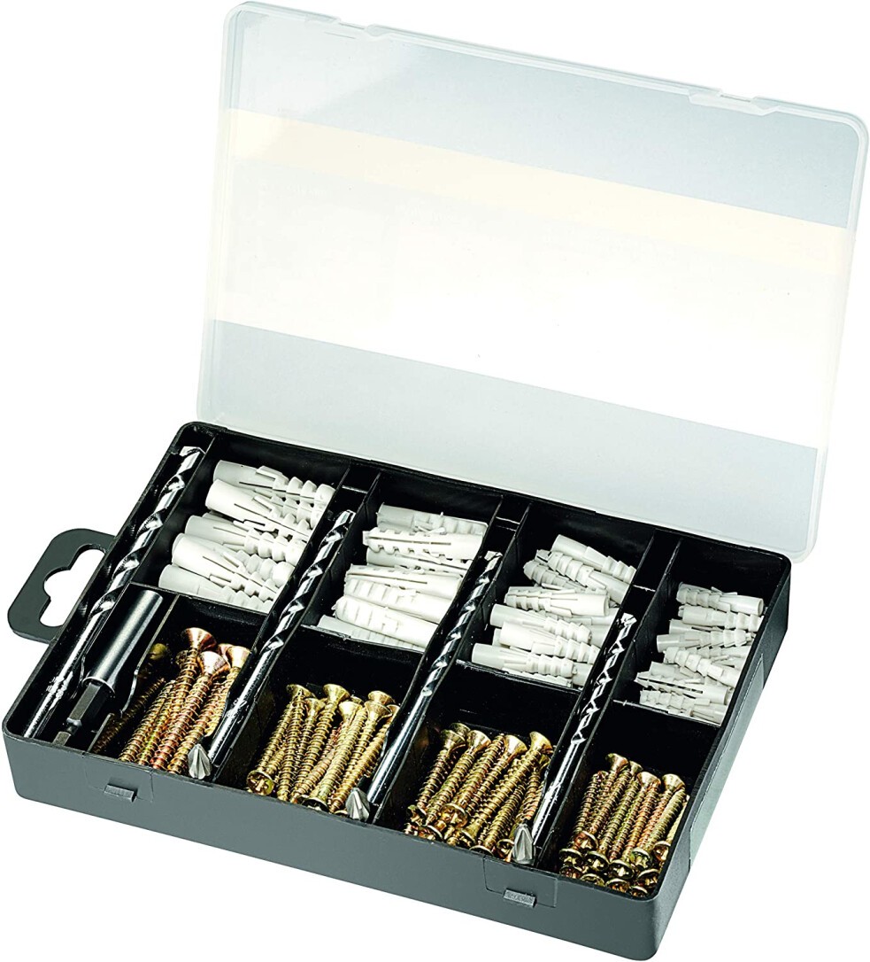 Das 173-teilige Befestigungsset ist ein komplettes Set für alle Bohr- und Befestigungsarbeiten in Mauerwerk.