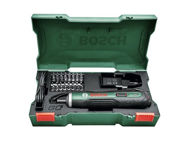 Bosch PushDrive. Product colour: Green. Torque (max): 5 N?m, Maximum torque (soft applications): 2.5 N?m, Maximum torque (hard applications): 5 N?m. Power source: Battery, Battery voltage: 3.6 V, Battery technology: Lithium-Ion (Li-Ion). Weight: 300 g, Package type: Box. Number of batteries included: 1 pc(s), Number of bits: 32 pc(s)