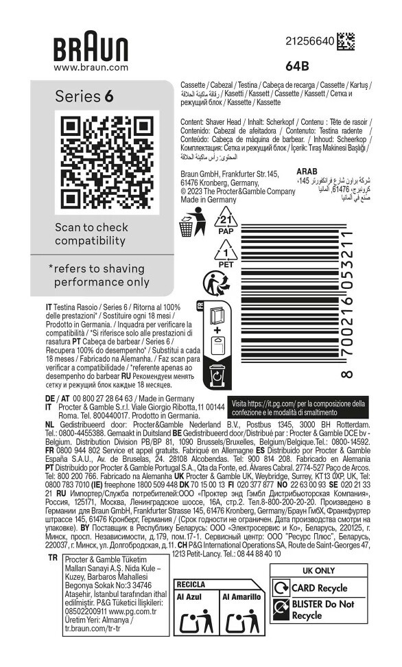 Braun Series 5 64 B, Scherkopf, 1 Kopf/Köpfe, Schwarz, Edelstahl, 18 Monat( e), Braun, Series 6 60, 61, 62