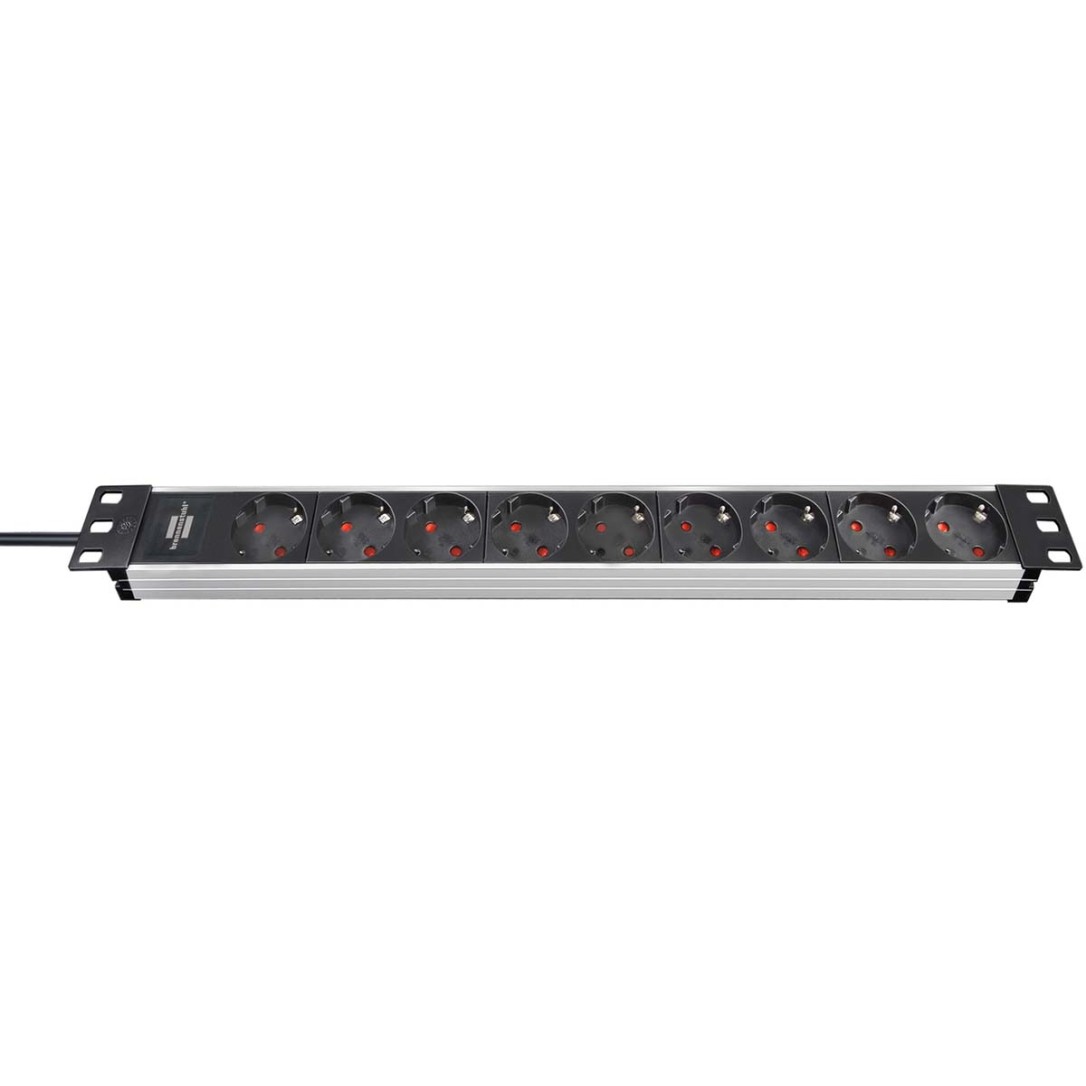 Alu-Line 19" Extension Socket f/ Cabinets - 9-Way - Alu/Black - 2m - H05VV-F3G1,5 - w/o Switch