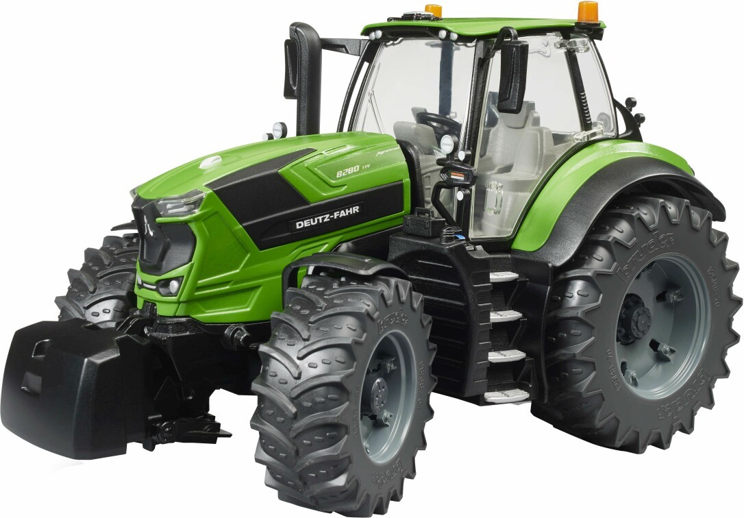 Der 8280 TTV von DEUTZ-FAHR: Wo Kraft auf Präzision trifft. Der 8280 TTV ist eine zuverlässige und starke Arbeitsmaschine mit dem perfekten Technologiemix für professionelle Landwirte. Mit beeindruckenden 287 PS ist dieser Traktor allen Herausforderungen gewachsen. Ebenfalls beeindruckend in Sachen Design, Funktionalität und Qualität steht das neue Modell von BRUDER im Maßstab 1:16 dem Vorbild in nichts nach, getreu dem Motto - just like the real thing. Die Fahrerkabine ist voll verglast und die Türen sind einfach zu öffnen. Die aufklappbare Motorhaube gewährt Einblick auf den Motor. Die einfache Lenkbarkeit wird durch die eingebaute Pendelachse und die durch das Schiebedach einsetzbare Lenkverlängerung erreicht. Zur Erweiterung dieses Modells kann ein Frontlader (Art.-Nr. 03333) montiert werden. Durch die höhenverstellbare Heckkupplung können alle Anhänger der Profiserie benutzt werden. Für noch mehr Spielspaß sind die neuen, abnehmbaren Räder angebracht. Die Erweiterung durch Figurenset Werkstatt (Art.-Nr. 62100) erhöht nochmals den Spielwert dieses tollen Artikels. Selbstverständlich passen an diesen Traktor alle landwirtschaftlichen Anhänger und landwirtschaftlichen Arbeitsgeräte aus dem Hause BRUDER.