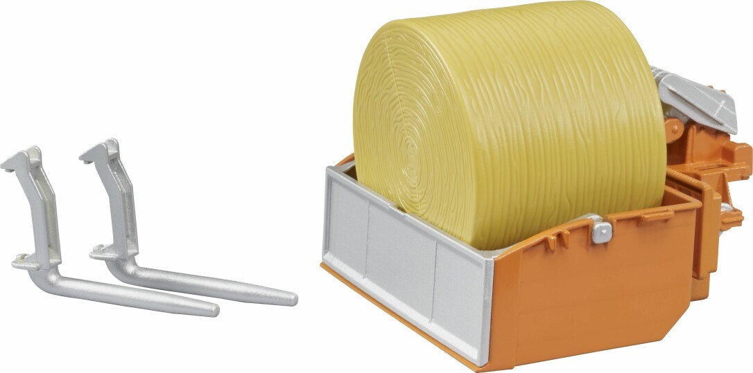 bruder Zubehör: Traktor-Ladekasten mit Gabeln + 1 Rundballen