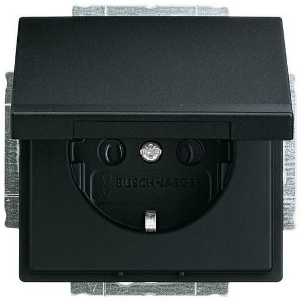 Busch-Jaeger 2018-0-1495. Socket type: CEE 7/3, Number of poles: 2P+E. Product colour: Black, Housing material: Plastic. Rated voltage: 250 V, Rated current: 16 A. Width: 63 mm, Depth: 46 mm, Depth of visual part: 1.5 cm