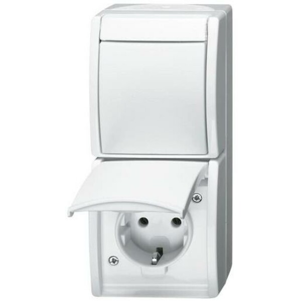 Busch-Jaeger 2601/6/20 EW-54. Socket type: CEE 7/3, Number of poles: 2P+E. Product colour: White, International Protection (IP) code: IP44, Certification: CE. Rated voltage: 250 V, Rated current: 16 A. Width: 74 mm, Depth: 55 mm, Height: 166 mm