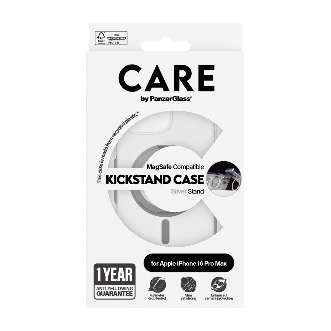 PanzerGlass CARE by ® Feature Case Transparent m. Silber Kickstand & MagSafe iPhone 16 Pro Max, Cover, Apple, Apple - iPhone 16 Pro Max, Transparent