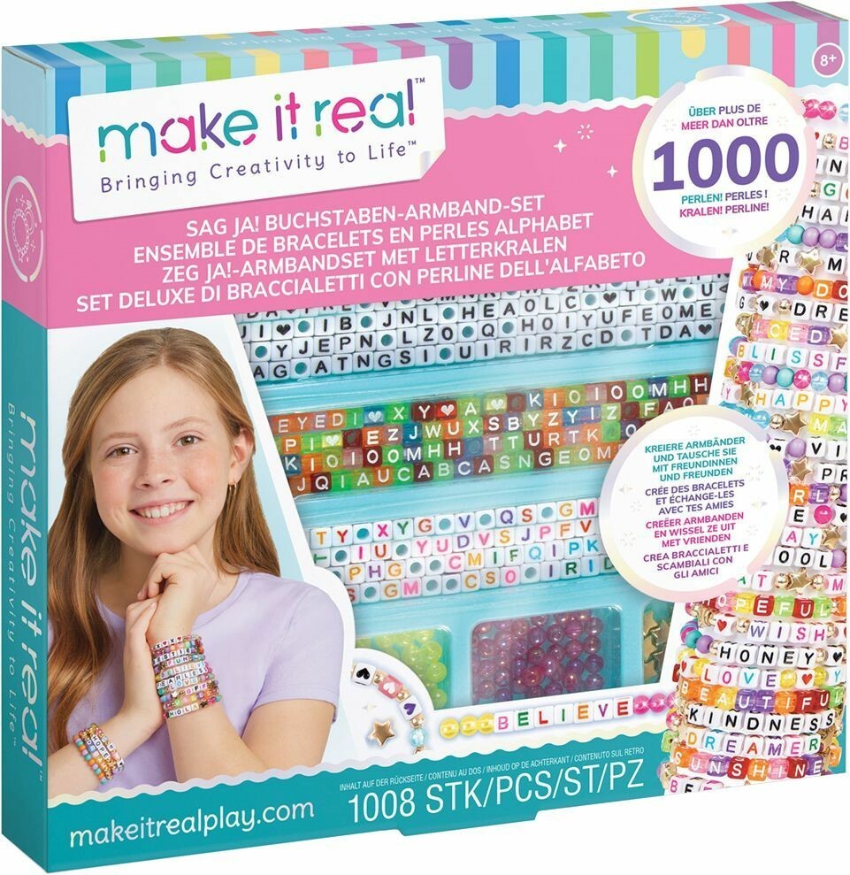 Das Buchstaben-Armband-Set mit über 1000 Perlen fördert die Kreativität von Kindern ab 8 Jahren. Es eignet sich perfekt, um gemeinsam mit Freunden und Bekannten individuell gestaltete Armbänder zu kreieren und zu tauschen. Inhalt: 1006 Perlen, 1 elastische Schnur (9m), 1 Anleitung.