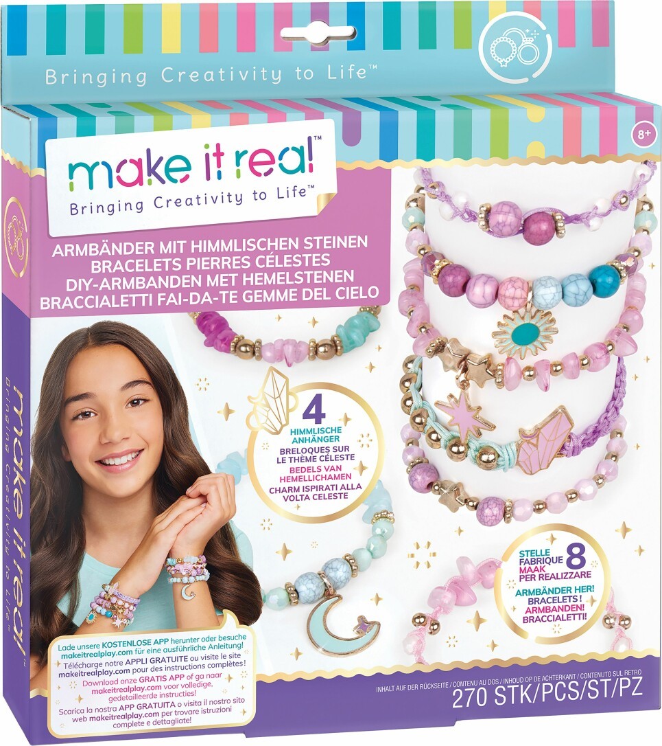 Set zum Herstellen von bunten Armbändern. Inhalt: 1 elastische Schnur, durchsichtig (2 m), 1 Nylonschnur (5 m),1 Nylonschnur (1,5 m), 1 Nylonschnur (3 m), 260 sortierte Perlen,4 Anhänger,1 Basteltablett,1 Anleitungsblatt.