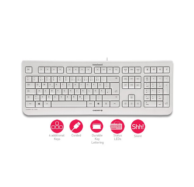 CHERRY KC 1000 is rock-solid CHERRY technology with an excellent price/performance ratio. Modern, flat design with gentle, quiet and durable wear-resistant keys. Universal, reliable and optimised for professional use. In black or grey.