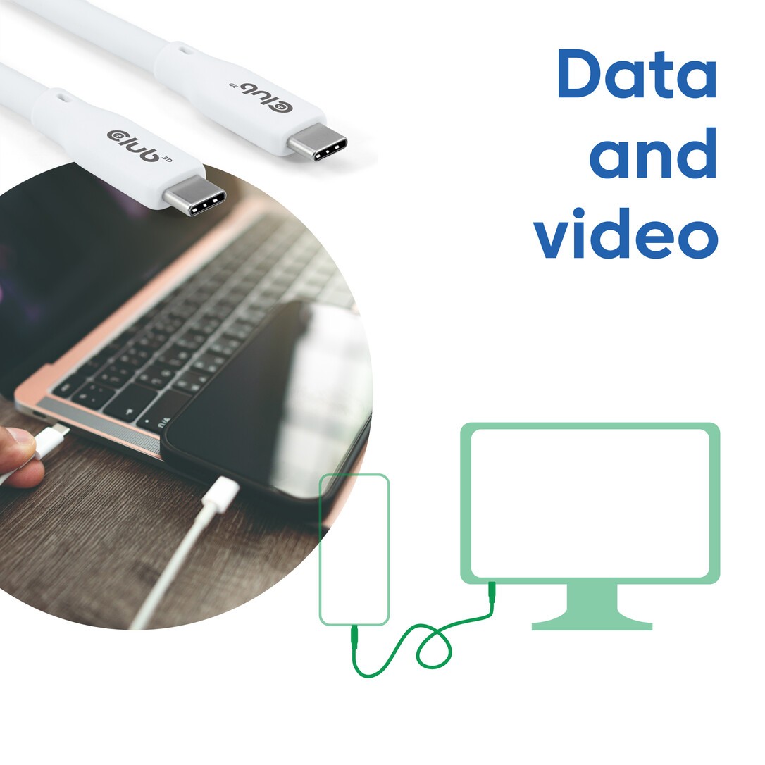 CLUB3D USB C kabel Weiß, 2 m, USB C, USB C, USB4 Gen 2x2, 20 Gbit/s, Weiß