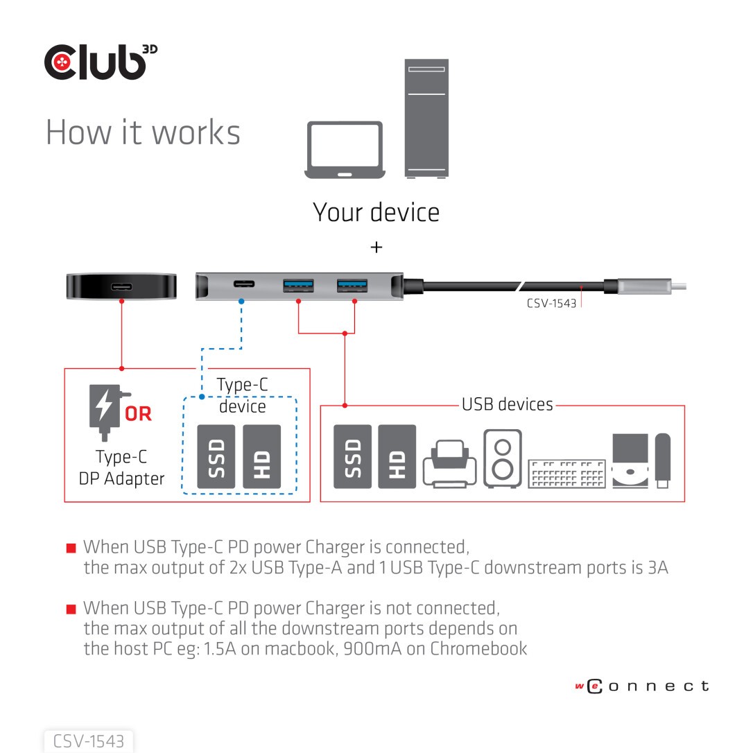 Club 3D USB Type C Gen2 auf 2 A+ 2 USBC Data Hub 1.5A - Digital