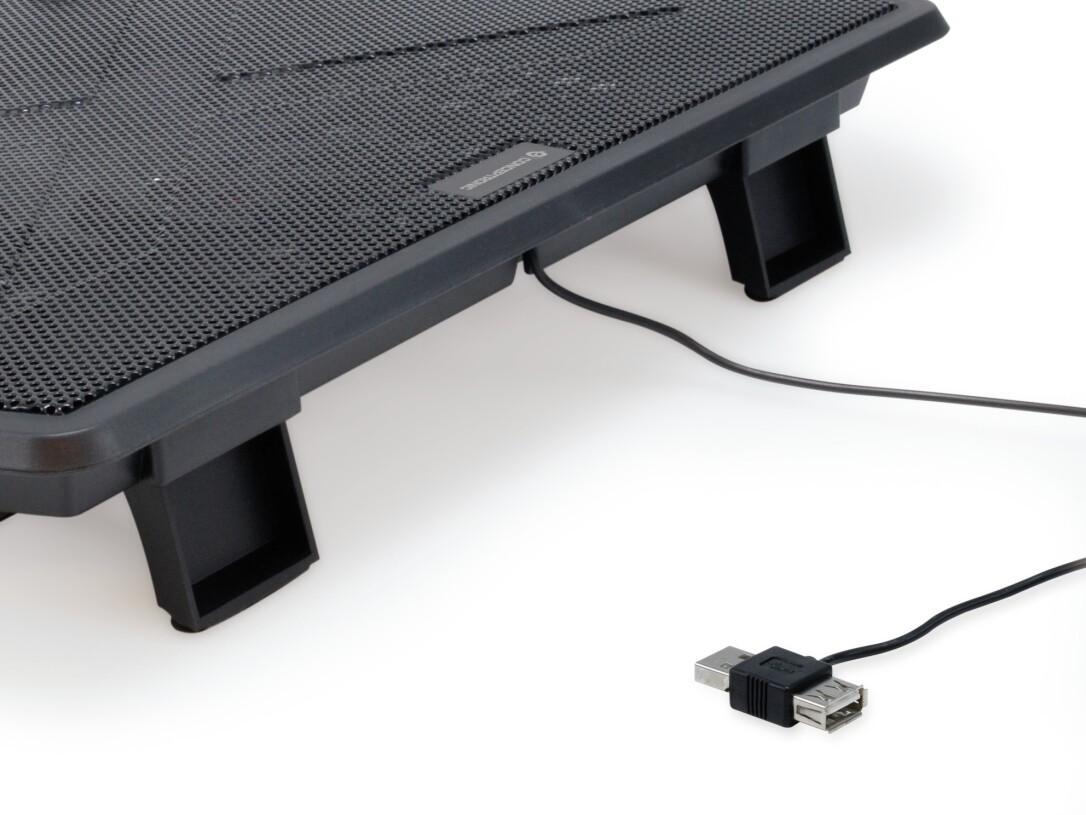 The Conceptronic notebook cooling pad will maintain safe and comfortable running of your portable device, using 1 quiet yet powerful fans. The cooling pad is USB powered, so it can work anywhere without the need for a power socket. The pad is cleverly designed with a groove for your USB chord, to avoid the wire becoming tangled and getting damaged.