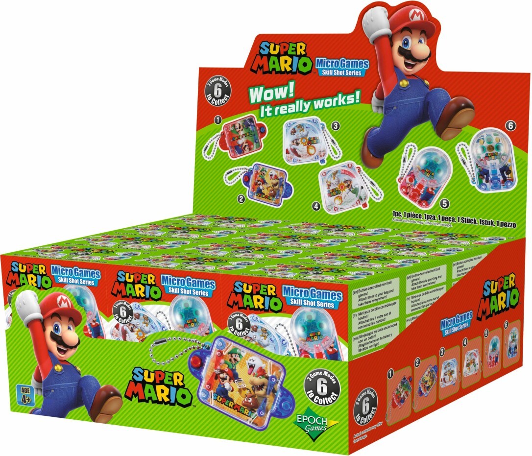 Super Mario BB Kugel Mini Spiel: Sammelspaß zum Mitnehmen! Das Super Mario BB Kugel Mini Spiel bringt kompakte Action direkt in die Hand. Perfekt für unterwegs, als kleine Überraschung oder als Sammelhighlight für Fans. Passend zum Kinostart von Super Mario Bros. 2 am 2. April 2026 erscheint das Mini-Spiel in sechs unterschiedlichen Designs rund um Mario, Luigi, Peach und Co. Mit den Triggertasten werden die kleinen Münzen durch das jeweilige Spielmanöver bewegt, mal springen sie über Hindernisse, mal balancieren sie auf einer Wippe. Jedes Modell bietet eine eigene Herausforderung und lädt zum Ausprobieren ein. Das Besondere: Alle sechs Varianten lassen sich miteinander verbinden für noch mehr Spaß und Sammelmotivation. Ideal als Mitbringsel, kleines Geschenk oder handliche Beschäftigung für zwischendurch. Für 1 Spielenden ab 4 Jahren.