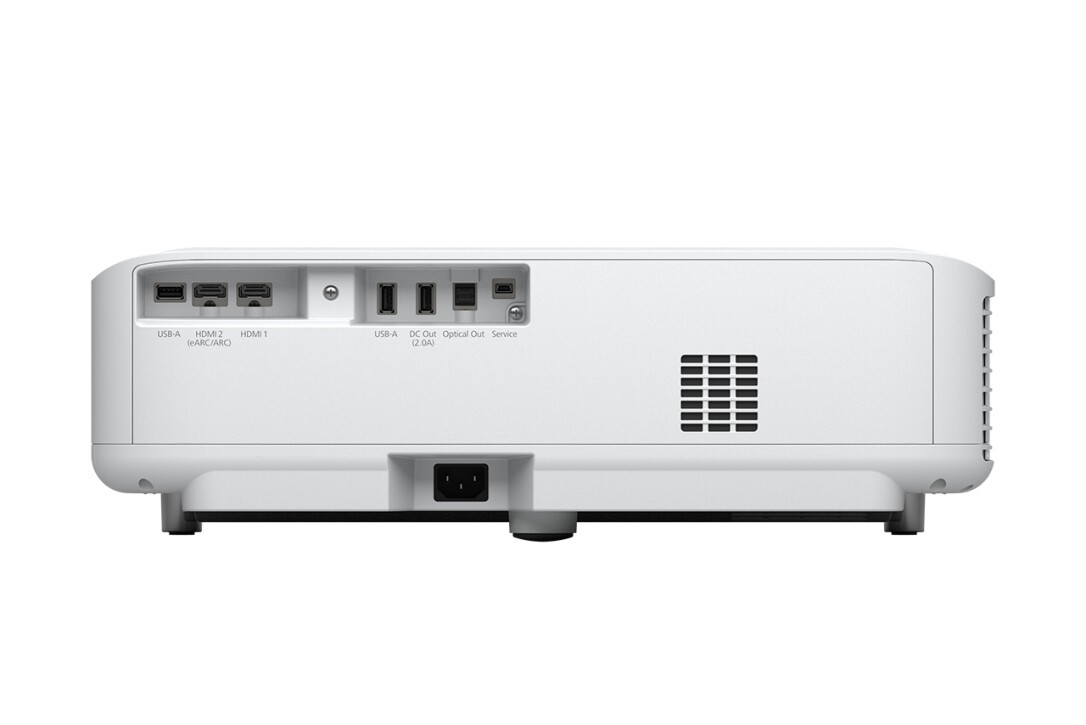 Epson EH-LS650W. Projektorhelligkeit: 3600 ANSI Lumen, Projektionstechnologie: 3LCD, native Auflösung des Projektors: 4K (4096x2400). Typ der Lichtquelle: Laser. Feste Brennweite: 3,7 mm, Zoomverhältnis: 1.25:1, Projektionsverhältnis: 0,25 - 0,62:1. Video-Farbmodi: Kino, Dynamisch, Natürlich/Natur, lebendig. Typ Serviceport: USB Typ-B