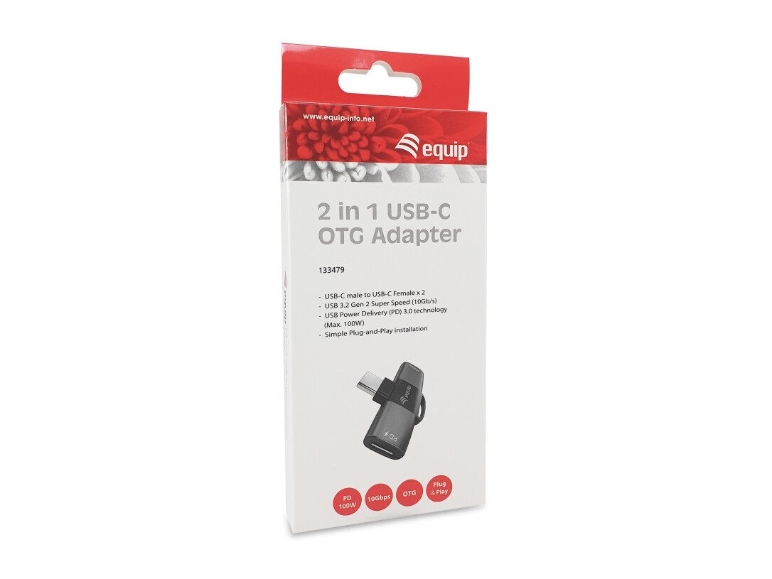 Equip 2-in-1-USB-C-OTG-Adapter, PD 100 W, 10 Gbit/s, USB-C, 2 x USB-C, Grau