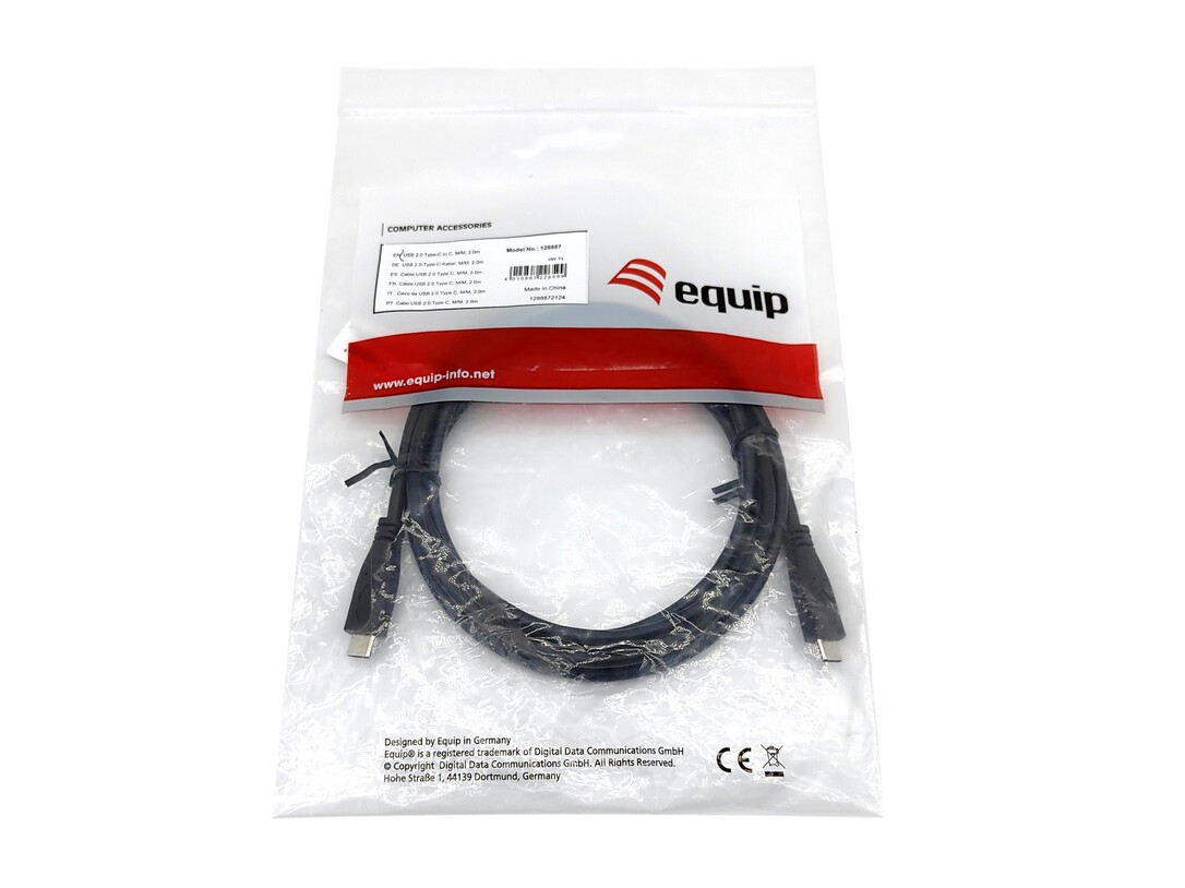 Equip USB 2.0 C auf C Kabel, M/M, 0.5m, PD 60W. Kabellänge: 0,3 m. Anschluss 1: USB C, Anschluss 2: USB C, USB-Version: USB 2.0, Max. Datenübertragungsrate: 0,48 Gbit/s, Beschichtung Steckerkontakte: Nickel, Produktfarbe: Schwarz