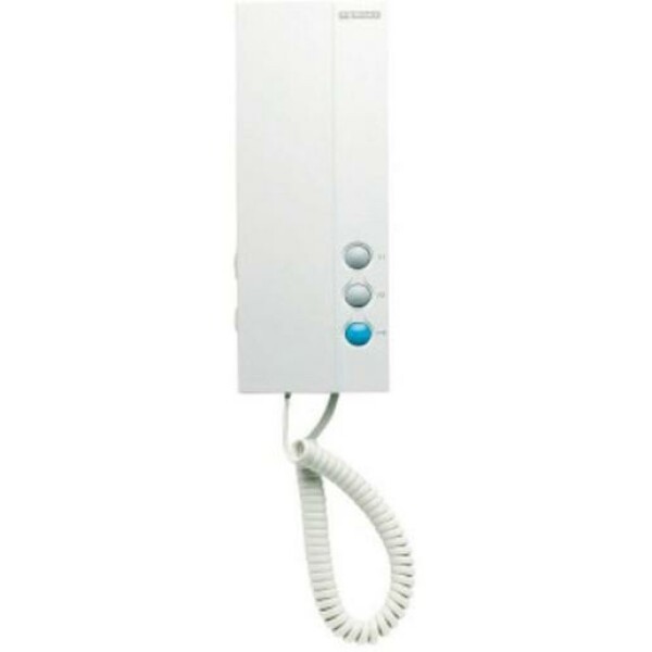 Haustelefon aus schlagfestem ABS – Kunststoff. Steckbare Hörerschnur. Automatische Mithörsperre. Eingebauter Magnet für optimalen des Hörers. Antilarson Filter zum Schutz gegen Rückkoppelung. Zeit für Rufannahme: 30 Sekunden. Max. Gesprächsdauer: 90 Sekunden. Eingebauter Tür- und Etagenruf zur Rufunterscheidung. 3 elektronische Ruftöne. Türöffnertaste. Dreistufige Lautstärkenregelung inkl. Rufabschaltung. Arztschaltung. 2 zusätzliche Funktionstasten (für zweiten Türöffner, Licht, etc.) über Zusatzrelais F3267(in eigener Position beschrieben). Anschluss für Zusatzsignalgeber F2040 (in eigener Position beschrieben). Liftsteuerung über Modul F9443 (in eigener Position beschrieben). Aufschraubbar auf jede handelsübliche UP-Dose Ø 68mm. Maße (B x H x T): 85 x 220 x 40 mm. Farbe: weiß.