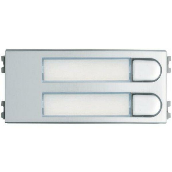 Einzeltaster-Modul 2 Ruftasten zum Einsetzen in SKYline Modul-Rahmen mit zwei verchromten Einfachtastern IP66. LED beleuchtete, wasserfeste Namensschilder von vorne austauschbar. Beliebig kombinierbar mit anderen SKYline Modulen. System: VDS/ Duox (Verkabelung: 3-Draht, CAT5, 5 Draht)/(Parallekabel, 3-Draht, CAT5, 5 Draht), Größe: V.