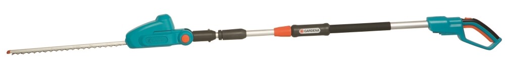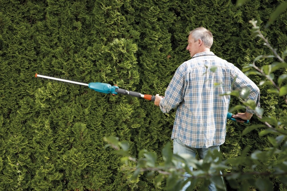 Battery hedge trimmer with telescopic handle for high hedges