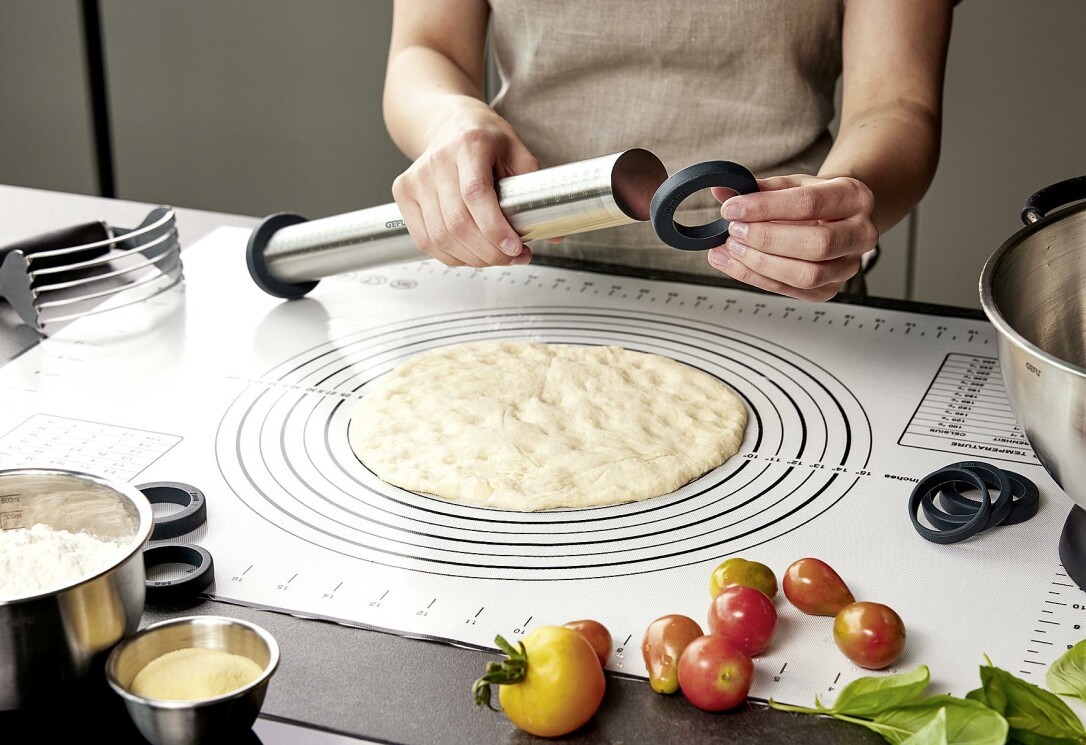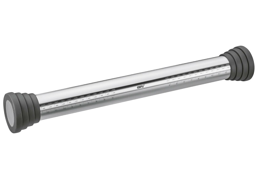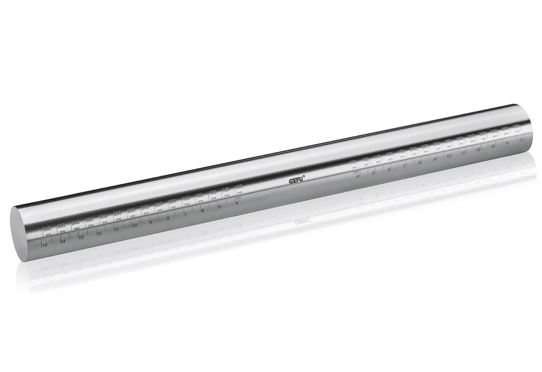 Mit dem innovativen Teigroller REGO gelingt perfekt glatter, gleichmäßiger Teig besser als mit jedem Nudelholz. Einfach das richtige Silikonringpaar für die gewünschte Teigstärke auf den soliden Edelstahlstab aufstecken und losrollen! Perfekt für Kuchen, Plätzchen, Pizza, Nudelteig & Co.