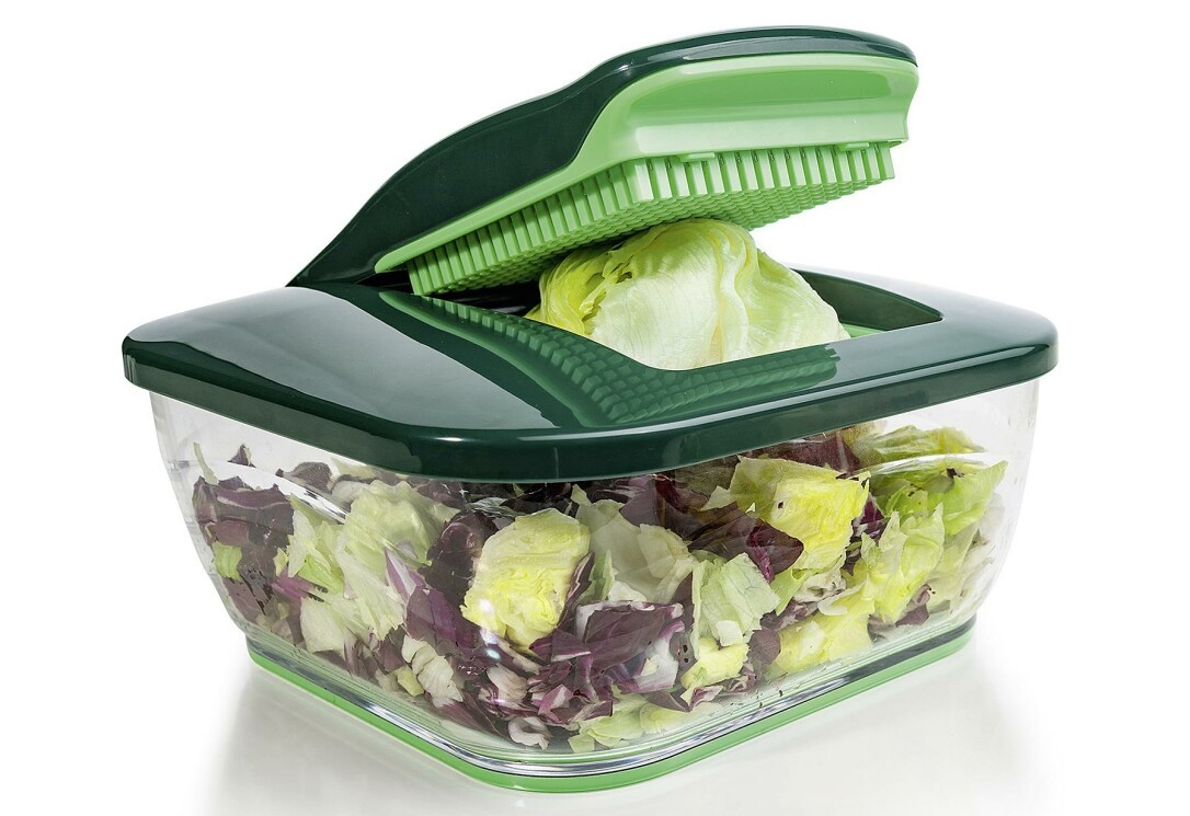 | Lieferumfang | 1 x Schneid-Oberteil, 1 x Schneid-Unterteil, 1 großer Auffangbehälter (Fassungsvermögen 3.300 ml), 1 x Frischhaltedeckel, 1 x Messer Sicherheitshinweise Warnhinweise entnehmen Sie den Zusatzdokumenten Reviews * Only reviews that were submitted by buyers who bought the product in this shop receive the addition "Verified Purchase". more