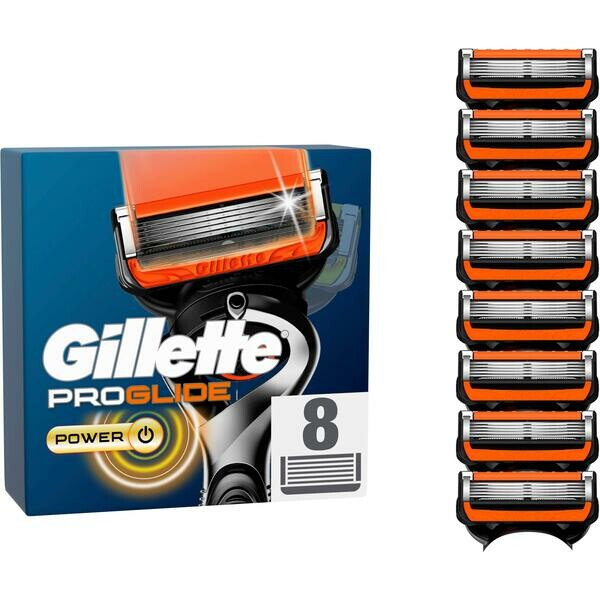 Die Gillette ProGlide Power Rasierer Ersatzklingen für Männer bieten die ikonische Rasurpräzision von Gillette mit Komfort und Stil. Dieser Rasierer für Männer hat einen größeren Gleitstreifen (im Vergleich zu Fusion5) für mehr Komfort und besseres Gleiten. Genießen Sie extra Klingenstabilisation, die für einen optimalen Abstand der Klingen und besseren Schutz der Haut sorgt. Die Präzisionstrimmer-Klinge auf der Rückseite eignet sich perfekt zum Stylen von Gesichtshaaren, vor allem an schwer zu erreichenden Stellen. Unsere ultra-scharfen Anti-Irritations-Rasierklingen sorgen für eine sanfte und glatte Rasur und passen auf alle Gillette 5-Klingen-Rasierergriffe (außer GilletteLabs). ProGlide-Ersatzklingen reichen für bis zu 1 Monat Rasur.