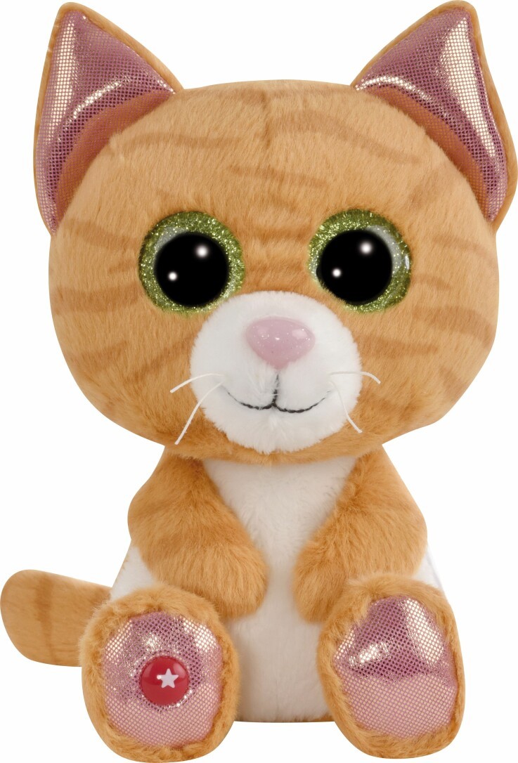Die GLUBSCHIS - das Original nur von NICI. GLUBSCHIS Katze Tabbrey lässt sich gern in ihre grünen Glitzeraugen schauen. Ihr einzigartiges getigertes Plüschfell, der entzückende Gesichtsausdruck, das rosafarbene Näschen mit den langen Schnurrhaaren und das auffällige Glitzermaterial an Ohren und Pfötchen verzaubert kleine und große Katzenfans im Nu. (c) 2022 Carletto, licensed by NICI GmbH