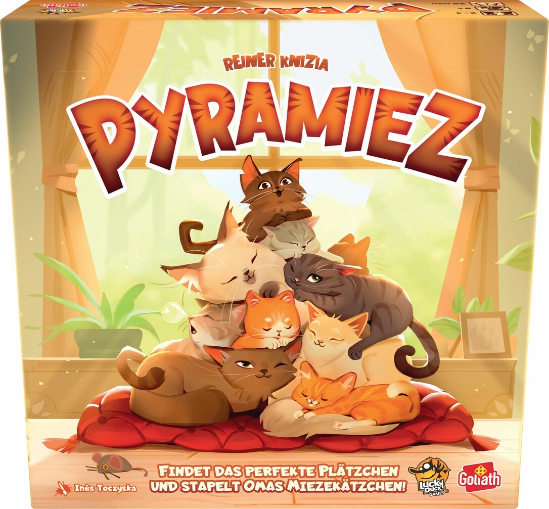 Ein chaotisch-lustiges Familienspiel, bei dem Glück und Geschick Hand in Hand gehen._x000B_ Die Spieler schlüpfen in die Rolle von Enkelkindern, die ihrer Großmutter dabei helfen, all ihre Kätzchen ins Bett zu bringen und davon hat sie eine ganze Menge! Die Katzen lieben es, an einem Ort zu schlafen, nebeneinander (und übereinander), am besten in einer Pyramide! Daher ist ein wenig Kreativität gefragt. Der erste Spieler, der alle ihm zugewiesenen Kätzchen ins Bett gebracht hat und so die Pyramide füllt, gewinnt!