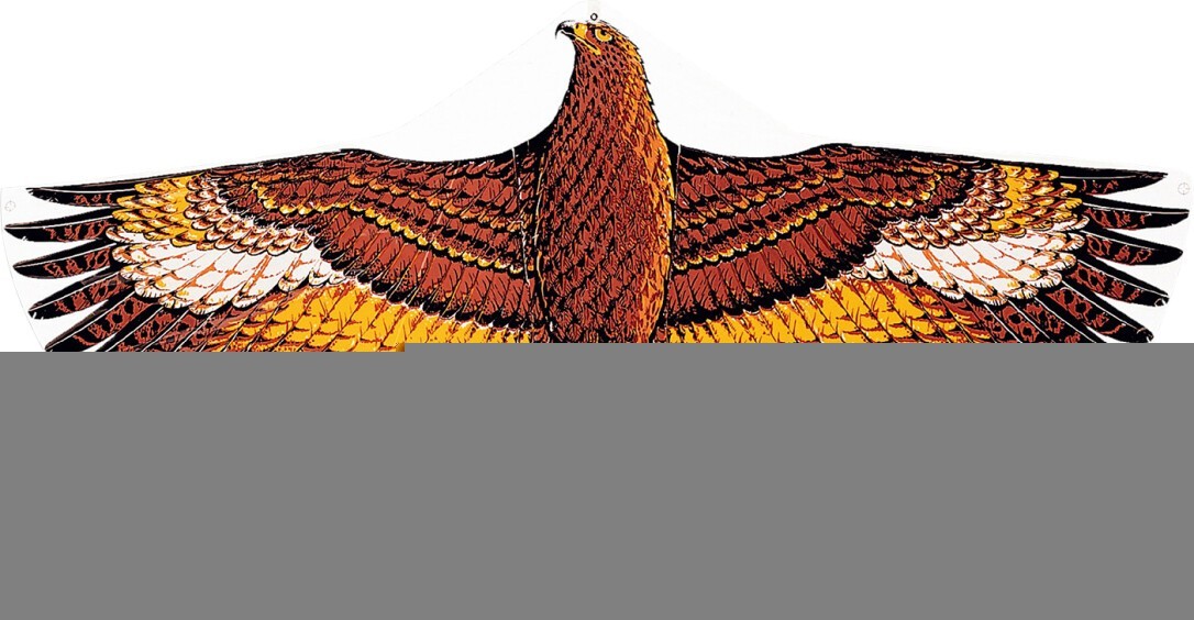 Kinderdrachen Steinadler mit Segel aus Polyethylen und unzerbrechlichen Fiberglasstäben. Mit einstellbarer Drachenwaage für unterschiedliche Windgeschwindigkeiten. Komplett mit Wickelgriff und Schnur. Maße: ca. 122 x 68 cm. Ab 4 Jahren.