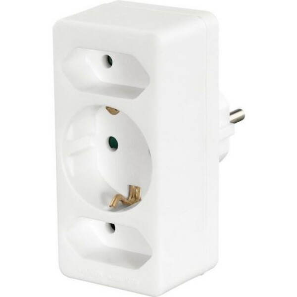 Steckdosenadapter 3-fach ermöglicht den Anschluss von bis zu drei elektrischen Geräten und bietet einen erhöhten Berührungsschutz, um unbeabsichtigten Kontakt zu vermeiden. Der Adapter ist in den Farbe Weiß erhältlich.