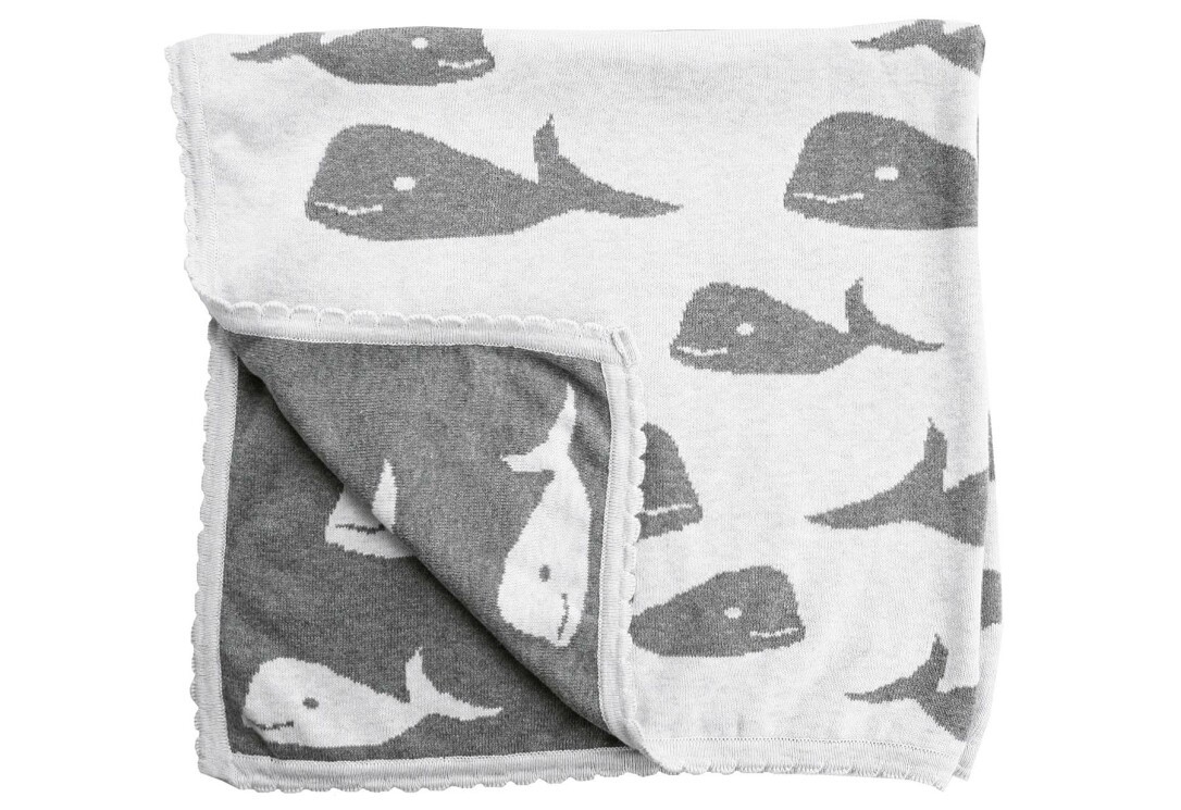 Hansekind Strickdecke "Wal". Eine Strickdecke zum Verlieben! Diese zauberhafte Decke mit Walen wird zum einzigartigen Blickfang und ist ein nützlicher und schöner Begleiter durch die Baby- und Kleinkindzeit. Sie ist besonders weich und anschmiegsam, ideal auch für unterwegs, wenn die Kleinen im Maxi Cosi oder Kinderwagen gewärmt werden müssen. Aber auch zu Hause kann man die Kinder gemütlich einkuscheln. Sie ist 80x80 cm groß und sehr pflegeleicht. Ein wundervolles Geschenk für sich selbst oder für andere - z.B. zur Geburt. Alle Hansekind Produkte werden mit viel Liebe fair und nicht in Fernost produziert. Wir legen Wert auf eine nachhaltige und faire Unternehmerkultur unserer Lieferanten. Wusstet Ihr schon: wir produzieren SLOW FASHION- unsere Kollektionen sind langlebig und aus sehr guter Qualität-den Menschen und der Umwelt zuliebe. 30° Wäsche, nicht trocknergeeignet. Farbe: grau.