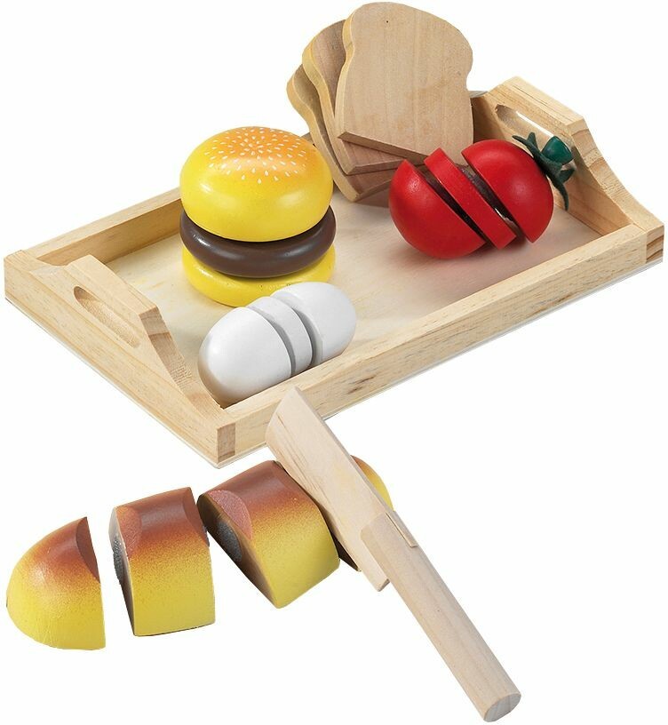 Holztablett Holzmahlzeit zum Schneiden (mit Klettverschluss) inklusive Holzmesser, Maße ca. 20,5 x 13 x 3,5 cm