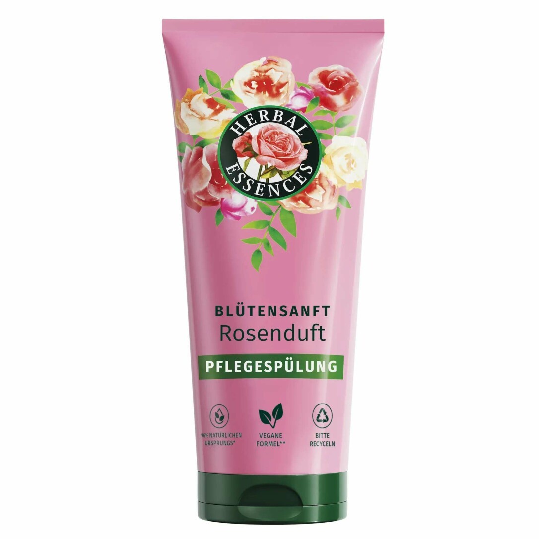 Die Herbal Essences Blütensanft Pflegespülung eignet sich hervorragend für trockenes Haar und hinterlässt ein seidig weiches Gefühl sowie einen zauberhaften Duft nach Rosen. Die vegane Formel mit pflanzlichen Nährstoffen sorgt für eine intensive Pflege und spendet intensive Feuchtigkeit. Außerdem sind die Inhaltsstoffe 96 % natürlichen Ursprungs und mit Arganöl angereichert.
