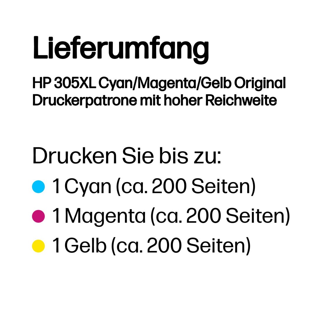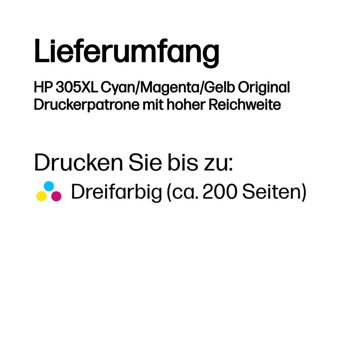 HP 305XL Cyan/Magenta/Gelb Original Druckerpatrone mit hoher Reichweite, Hohe (XL-) Ausbeute, Cyan, Magenta, Gelb, Tinte auf Farbstoffbasis, 5 ml, 1 Stück(e), Multipack