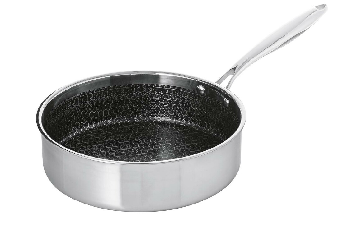 Hensslers Edelstahl-Schmorpfanne inkl. Glasdeckel ist der Allrounder zum Braten und Kochen von Fleisch, Fisch und Gemüse. Geeignet für alle Herdarten und im Handumdrehen heiß. Hensslers Pfanne ist zum Braten, Kochen und Schmoren für alle Herdarten einschließlich Induktionsherd, Gas- und Elektroherd sowie Keramikherd bestens geeignet. Der hohe Rand ist bestens geeignet für die Zubereitung größerer Mengen köstlicher Pfannengerichte. Selbst für den Backofen ist Steffens Bratpfanne bis 230 Grad hitzebeständig und backofenfest. Mit Hensslers Pfanne wird durch die gleichmäßige und lange Wärmeverteilung jedes Gericht, egal ob Fleisch, Fisch oder Gemüse, auf den Punkt genau gebraten bzw. gegart. Das Mehrschichtmaterial und die innovative Wabenstruktur sind das Herzstück von Steffens Pfanne. Durch mehrere Schichten aus Edelstahl und Aluminium sowie die Antihaftbeschichtung gelingen Anbraten und gleichmäßiges Garen, mit einer um ca. 60% verbesserten Verteilung der Hitze als bei einer einschichtigen Edelstahlpfanne. Die Wabenstruktur unterstützt die gleichmäßige Verteilung und reguliert die Zufuhr über die gesamte Pfannenfläche, ohne dass zu bratende Zutaten anhaften und verbrennen. Besonders hervorstechend im Design ist die innovative Wabenstruktur, die nicht nur funktional einen extremen Härtegrad liefert, ohne zu zerkratzen, sondern auch besonders modern aussieht. Mit einem Durchmesser von 26cm leicht zu handhaben, ohne ständig hin und her zu rutschen. Die Härte von rostfreiem Edelstahl und das Mehrschichtsystem unterstützen die hohe Langlebigkeit der Pfanne zusätzlich. Intensiver Gebrauch ist Euch durch den Aufbau und die qualitative Verarbeitung über lange Zeit garantiert möglich.