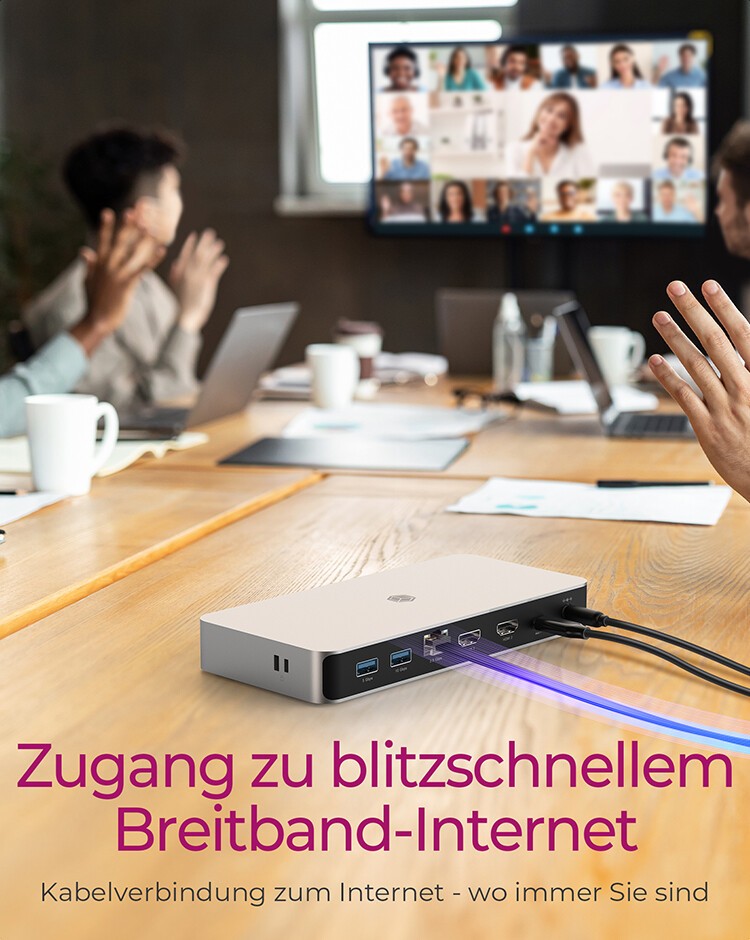 Zugang zu blitzschnellem Breitband-Internet: Erleben Sie die beste Verbindung über ein Netzwerkkabel, auch wenn Ihr Notebook nicht über einen Anschluss verfügt. Dank des schnellen USB4-Standards bleiben Sie mit bis zu 2,5 Gbit/s verbunden