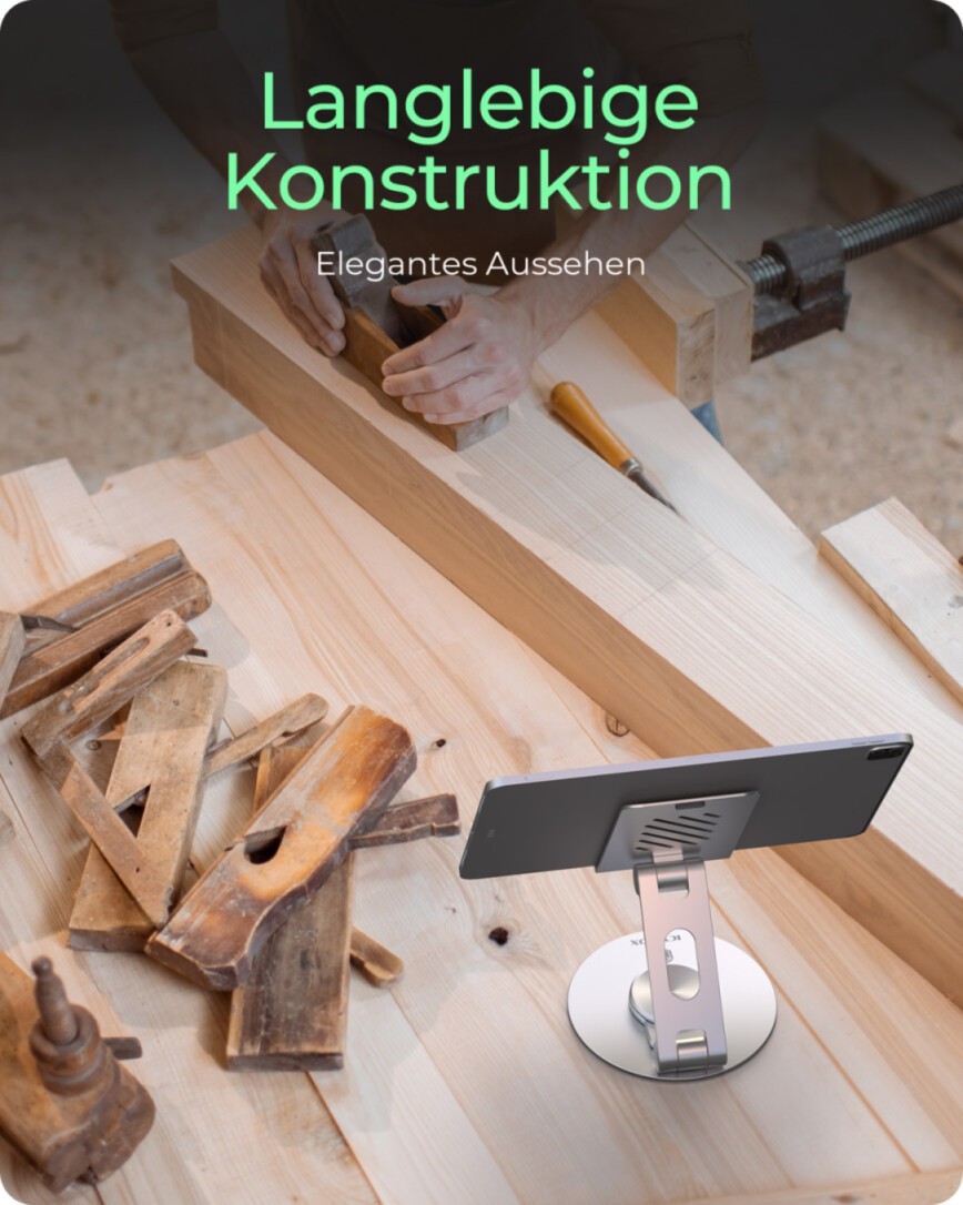 ICY BOX IB-TH201-R, Tablet & Smartphone Halter, rotierend, höhenverstellbar, Aluminium, für Tablets bis 12,9" (32,8 cm). Handy-Gerätetyp: Handy/Smartphone, Tablet/UMPC, Typ: Passive Halterung, Vorgesehene Verwendung: Universal, Produktfarbe: Silber