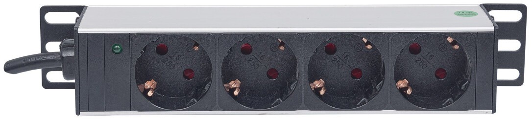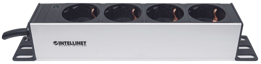 Intellinet 10" 1U Rackmount 4-Way Power Strip - German Type" - With Power Indicator - No Surge Protection - 1.8m Power Cord (Euro 2-pin plug) - Basic - 1U - Horizontal/Vertical - Grey - 4 AC outlet(s) - Type F
