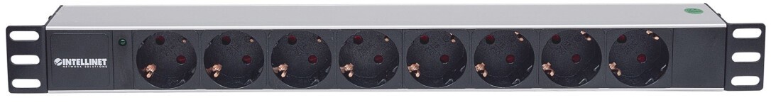 Intellinet 19" 1.5U Rackmount 8-Way Power Strip - German Type" - With LED Indicator Only - No Surge Protection - 1.6m Power Cord (Euro 2-pin plug) - 1U - Horizontal - Aluminium - Aluminium - Black - 8 AC outlet(s) - Type F
