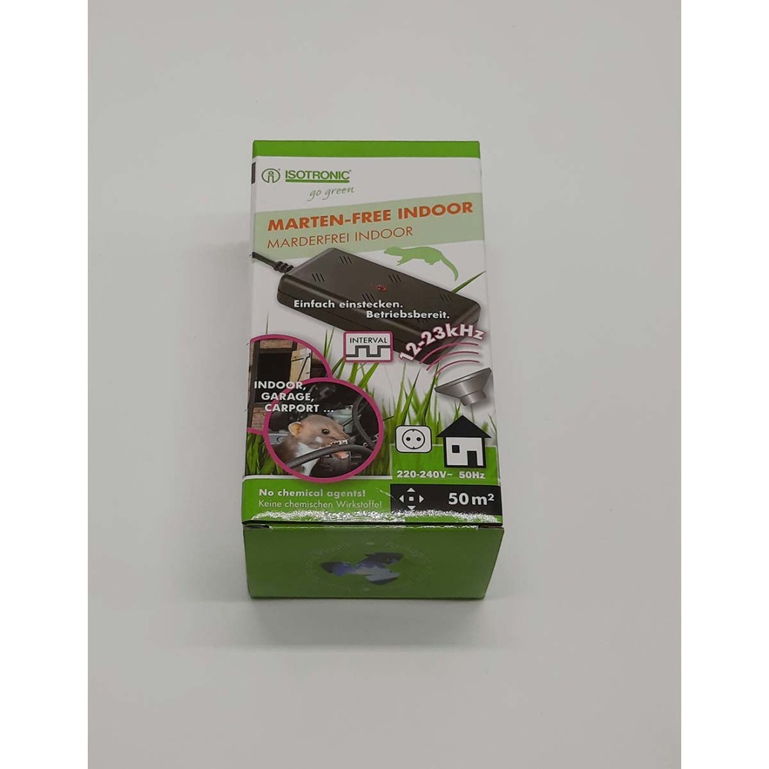 Electronic appliance with ultra-high sound (interval). The appliance protects against martens in your house, stables, stacks and in your attic. (indoor). Handling is unbelievably simple. A socket is enough for the appliance to be ready for opration.
