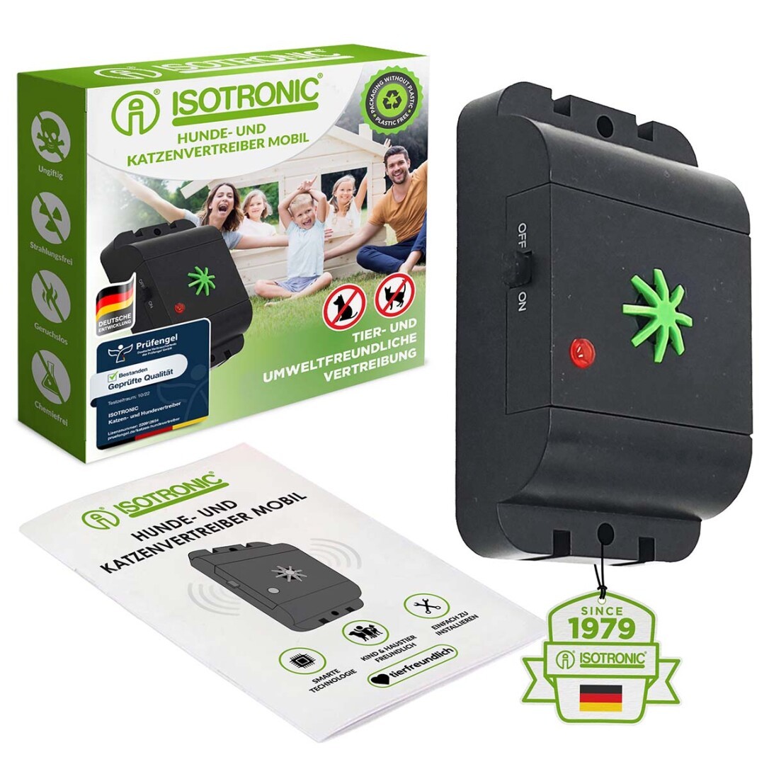 Der innovative mobile Tiervertreiber von ISOTRONIC. Batteriebetrieben, mobil und hochwirksam.Sie müssen sich in Zukunft nicht mehr über ungewollten Besuch von Tieren in Ihren Räumlichkeiten ärgern. ISOTRONIC Tiervertreiber Mobil hält mit ultrahohen Intervall-Tönen die beißwütigen Plagegeister fern von Haus, Garten, Garage, Scheune, Dachboden oder Garten. Sofort startklar, kein externer Stromanschluss und keinerlei Anschluß an das Stromnetz erforderlich.
