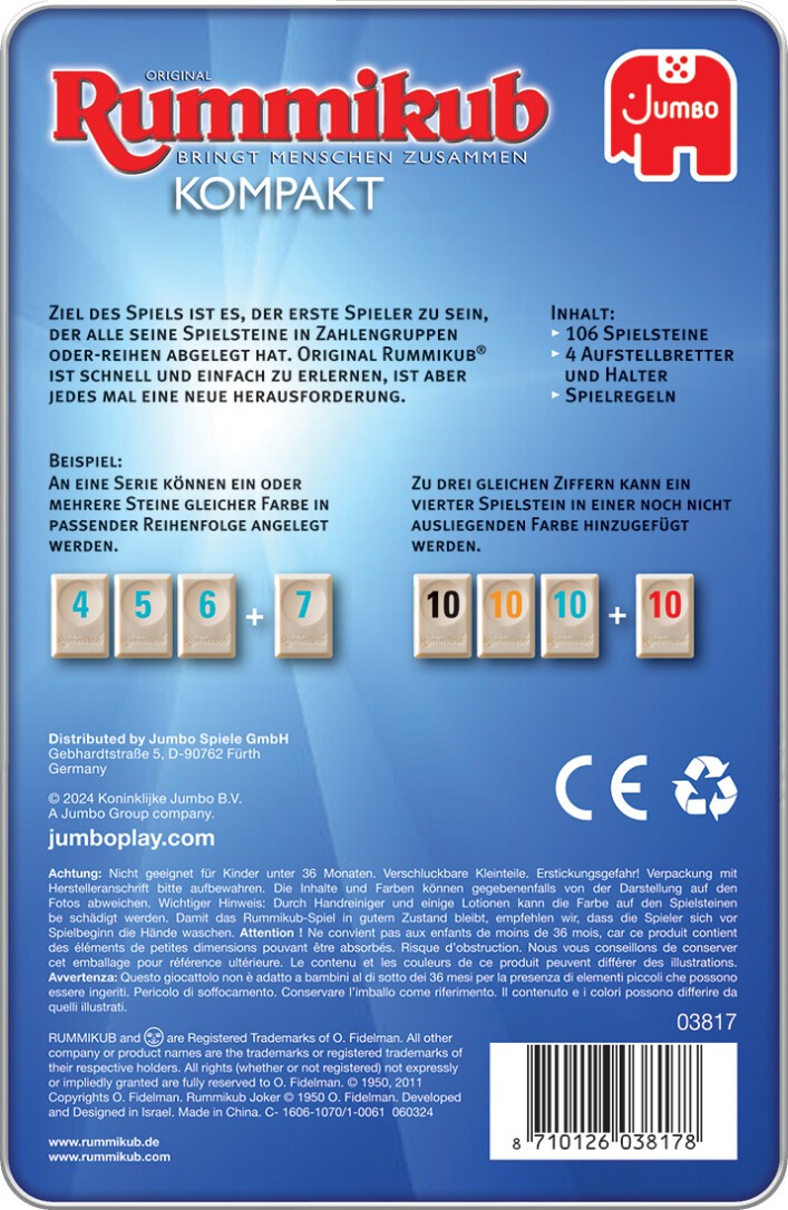 Jumbo 03817 Original Rummikub Kompakt in Metalldose