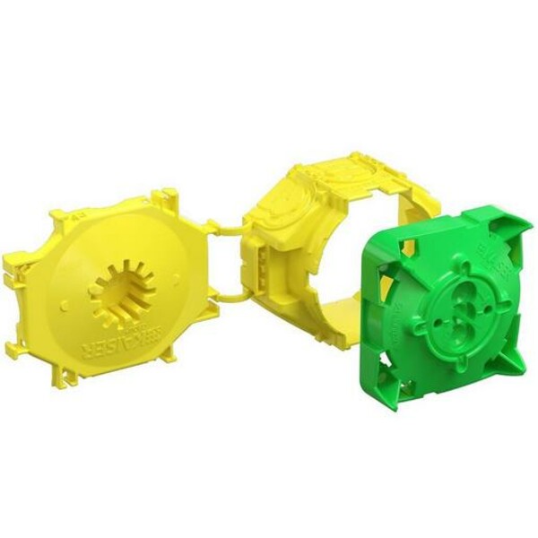 Raum für 3 Anschlussklemmen und zugehörige Leitungen. 2-teilig mit angespritztem Rückteil, 2 Aufnahmen für B1 Prefix-Systemflügel. Dosen-Rückteil mit Aufnahme für Stützelement, Für alle Schalungsarten geeignet. Einbauöffnung Ø 35 mm. Länge x Breite x Tiefe 94 x 75 x 59 mm.