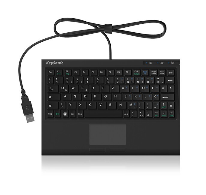 KeySonic ACK-3410. Keyboard form factor: Mini, Device interface: USB, Keyboard key switch: Membrane, Keyboard number of keys: 80. Cable length: 2 m. Recommended usage: Office. Product colour: Black