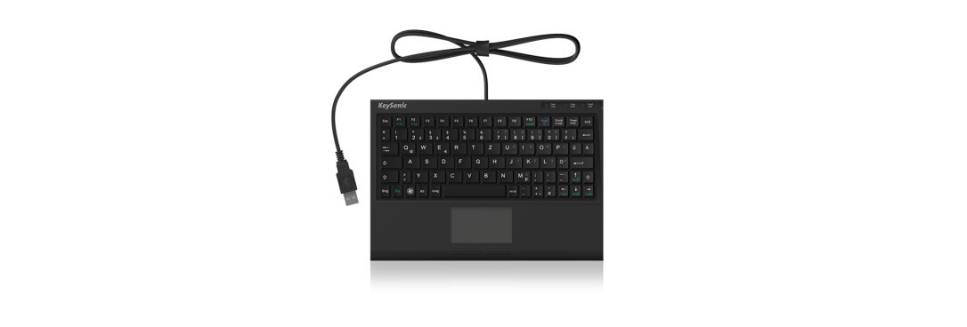 The ACK-3410 is so compact that it easily fits into the smallest working environments. With its width of just under 22 cm, it does not necessary forego on comfort functions like ba mousepad. Thanks to the 200 cm cable, it can be used flexibly and does not have to be installed in the immediate area of the workstation. Since there is a cable and no batteries need to be changed, it can be installed in a stationary position.