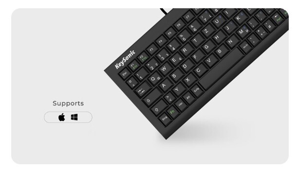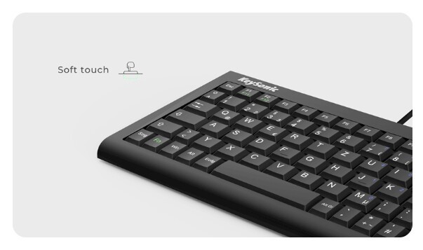 KeySonic ACK-3401U (UK) Super-Mini-Tastatur, SoftSkin, USB, schwarz, Tenkeyless (80 - 87 %), Kabelgebunden, USB, Membran Key Switch, QWERTY, Schwarz