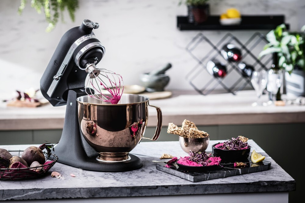 Combining strength and beauty, this is the stand mixer with stainless steel accessories. Easy to clean, knock and scratch resistant … and, of course, super stylish.