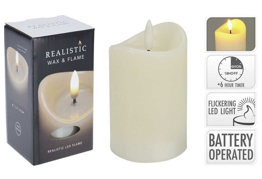 | Artikeleigenschaften | 1 LED-Flamme | 6 / 18 Timer | batteriebetrieben | 2 x AAA-Batterien nicht enthalten |