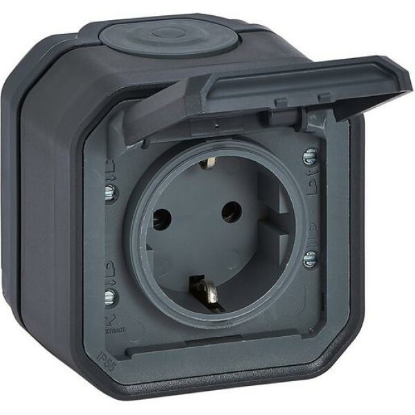 Wetterfestes Verkabelungszubehörsystem für Wohn- und Gewerberäume (Garagen, Keller, Parkplätze, Industriewerkstätten und Küchen) sowie Außenbereiche (Terrassen, Gärten, Campingplätze usw.). Vorverkabelte Steckdosen mit Anschlüssen.